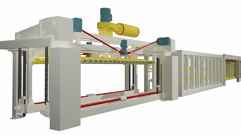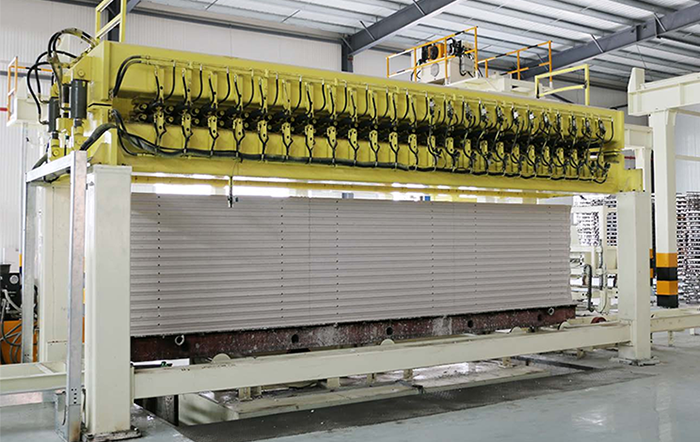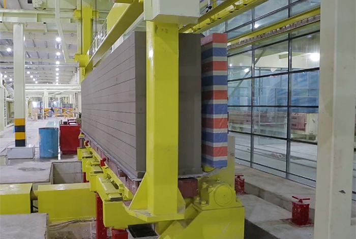 切割機組是加氣板材生產(chǎn)線的核心設(shè)備,用于切割不同尺寸的坯體,滿足超精確砌塊和板材的切割精度要求,生產(chǎn)板材時配合板材進給刮刀,調(diào)節(jié)側(cè)面切割機的刮刀行程,可以滿足不同尺寸制品的混合切割。