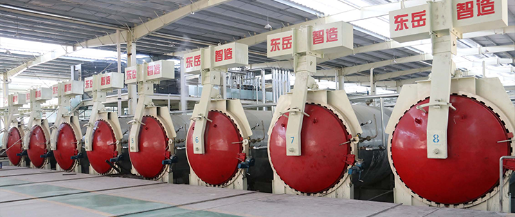 加氣板材經(jīng)過蒸壓釜,坯體獲得最終的強度和性能。出釜后的產(chǎn)品,通過東岳最新研發(fā)的掰板打包系統(tǒng),不但提高產(chǎn)品合格率同時解決了砌塊、板材同時分離的難題。