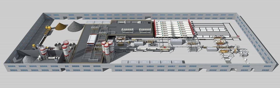 料漿、膠結(jié)料、石膏和鋁粉都分別通過相應(yīng)自動計量稱計量,后在攪拌機內(nèi)高速攪拌,澆注到模箱后進行氣泡梳理。整個體系由 PLC 系統(tǒng)進行自動控制,保證工序的精確和高效。